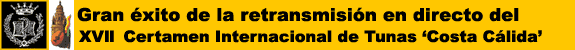 Totana.com retransmitió los días 14, 15 y 16 de Abril en directo por Internet el XVII Certamen Internacional de Tunas ‘Costa Cálida’ (declarado de interés turístico regional desde 1997) celebrado en la Pérgola de San Basilio.