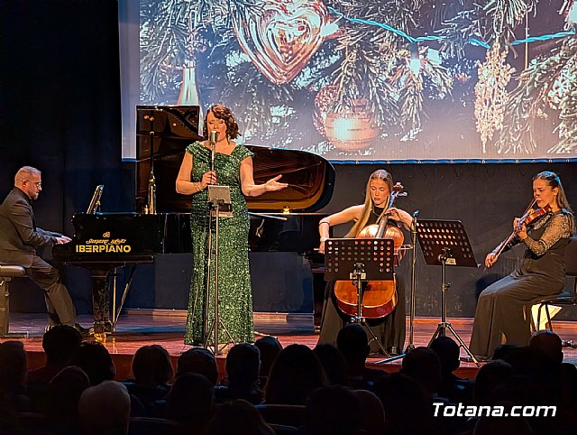 Antes de concluir, fue la encargada de presentar a los protagonistas de la noche, el grupo Blue Moon, integrado por la potente y sensible voz de Leo García, el piano y la guitarra de Juan Martínez, la expresividad de la violinista Victoria Acosta y el sonido profundo y maduro de la violonchelista Sandra Belchí, una formación que, en palabras de la propia presentadora, encarna a la perfección el espíritu con el que Totana inaugura cada nuevo año musical.