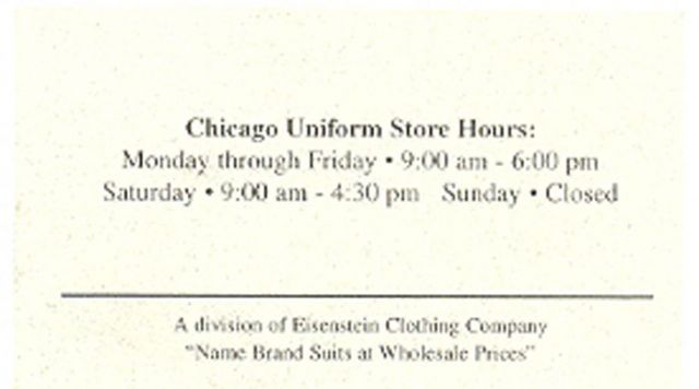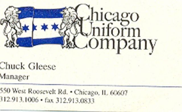 Agradecimiento a la Empleada del Establecimiento Chicago Uniform Company y a su Manager Chuck Gleese, por su amabilidad en nuestra visita a su ciudad. Maria y Angel (Policia Totana) Spain