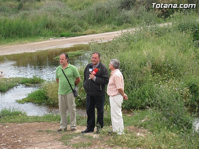 Los candidatos de IU-Verdes en Totana, Ginés Domingo Pérez, Juan Valero y Juan José Cánovas, han convocado a los medios de comunicación locales en el lecho del Guadalentín, a la altura de la Casa del Clérigo, en la Diputación de Lébor Alto, para poner en evidencia "la ausencia de tratamiento a las aguas fecales y la grave contaminación en la zona".
