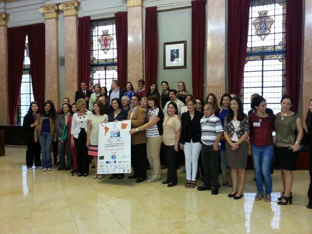 La concejal de Bienestar Social y Sanidad, María del Carmen Pelegrín, acompañada por la Consejera de Sanidad y Política Social, Ángeles Palacios Sánchez, han recibido esta mañana a los participantes en este primer encuentro que se celebra en Murcia y que reúne a representantes de 10 países latinoamericanos y 5 europeos.
