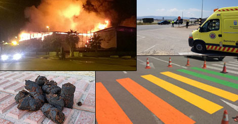 1 - Servicios de emergencia trabajan en la extinción del incendio de una nave en el PolÃgono de Totana