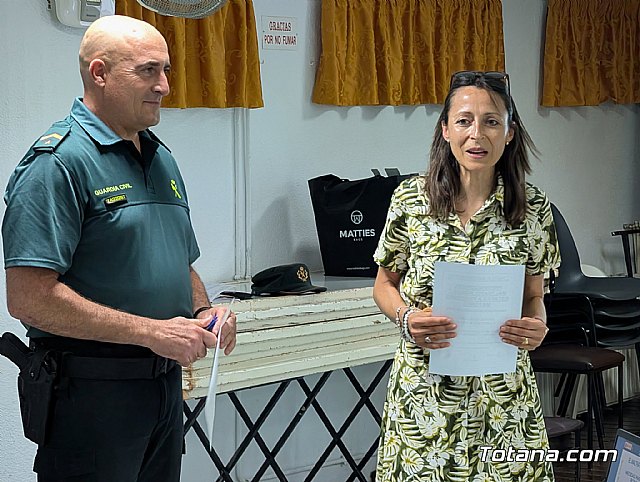 La charla, impartida por un teniente de la Guardia Civil de Totana, forma parte del "Plan Mayor de Seguridad", una de las iniciativas de la Guardia Civil, que busca mantener al día a la población sobre la evolución de la delincuencia. La charla, de casi 3 horas de duración, contó con la participación activa de los asistentes con preguntas para resolver sus dudas.