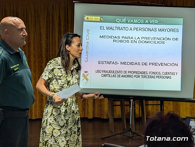 El Centro de Personas Mayores de Totana fue el escenario el pasado jueves 12 de junio de una interesante charla informativa organizada por la Concejalía de Bienestar Social y Personas Mayores del Ayuntamiento de Totana. Impartida por la Guardia Civil de Totana, la sesión se centró en la prevención del maltrato, robos y estafas, dirigida a las personas mayores, aunque la información es relevante para toda la ciudadanía.