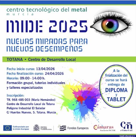 El Centro de Desarrollo Local de Totana desarrollará del 13 al 24 de abril, en horario de 9:00 a 14:00 horas, el Programa MIDE 2025; una iniciativa formativa orientada a mejorar la empleabilidad mediante la actualización de competencias y el reciclaje profesional.