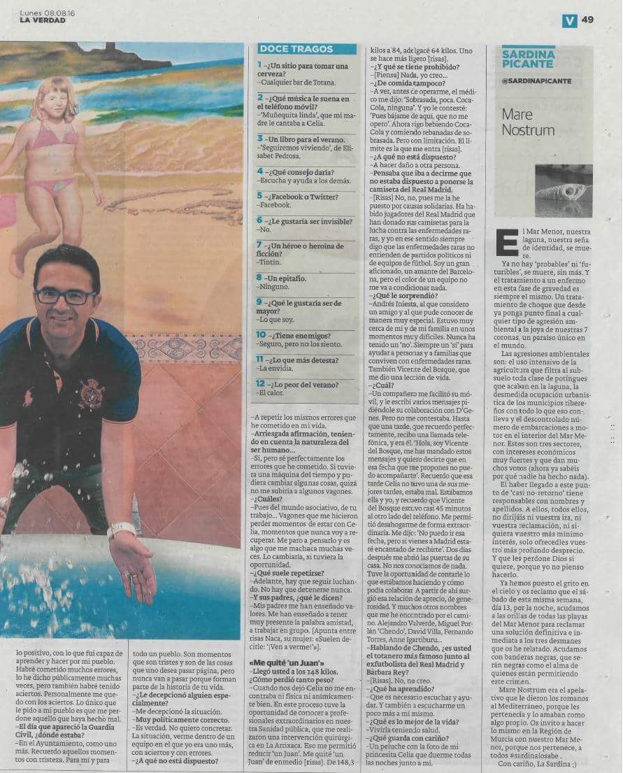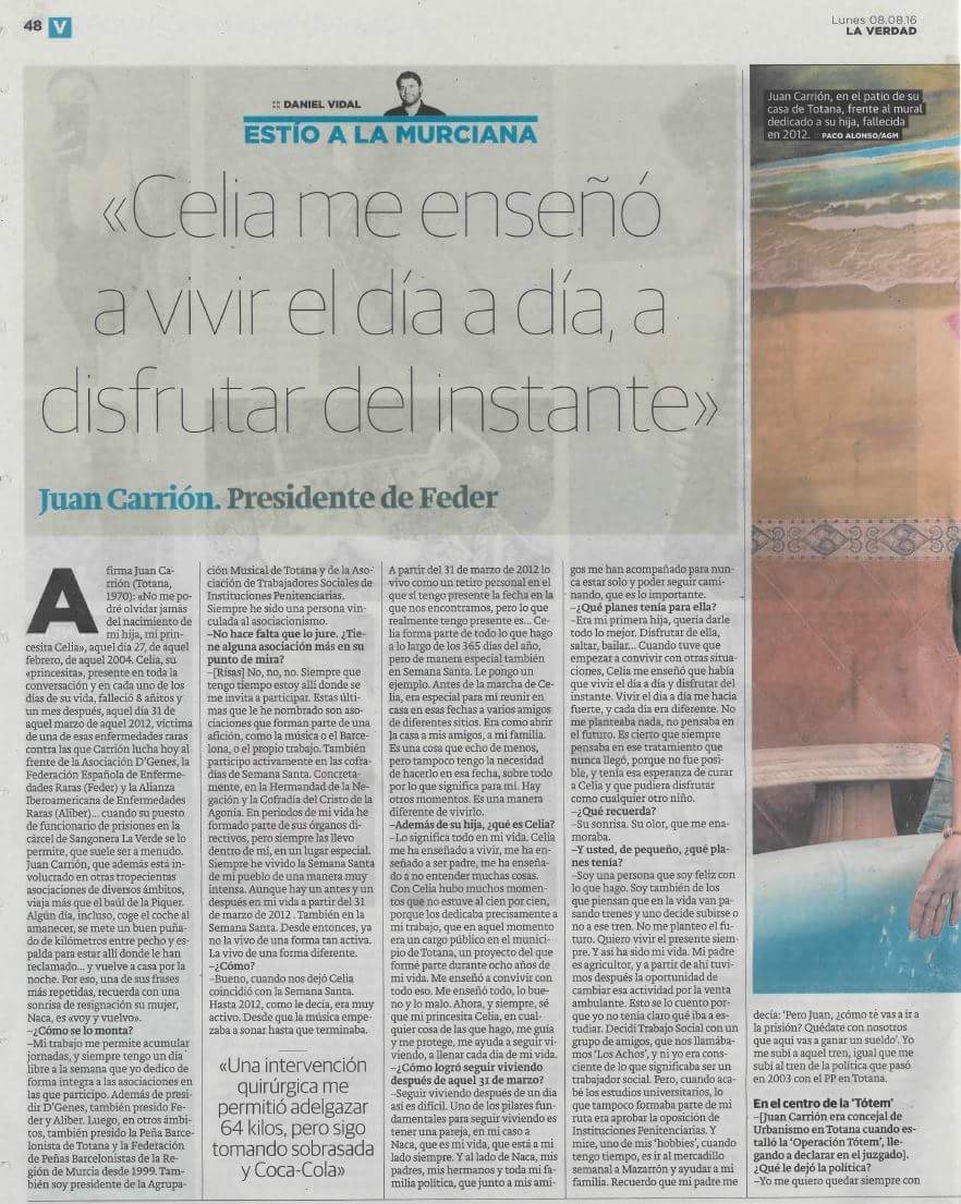 10/08/2016 JUAN CARRIÓN PRESENTE EN UNA AMPLIA ENTREVISTA EN EL DIARIO LA VERDAD Se ha publicado en la edición del pasado lunes 8 de agosto