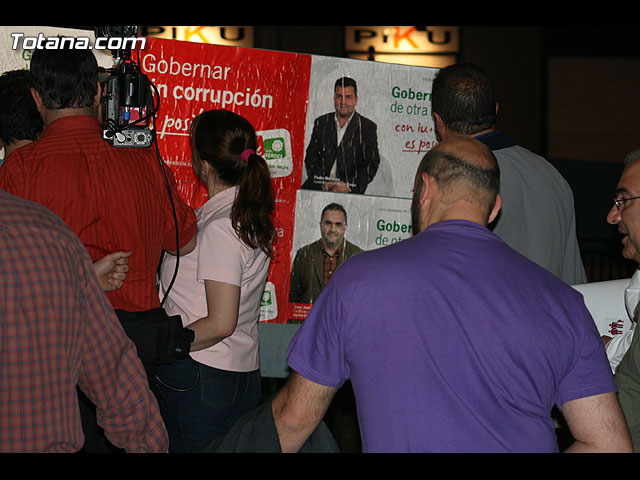 Afiliados y simpatizantes de PP, PSOE , IU+Los Verdes e Independientes por Totana abrieron la campaña electoral con la pegada de carteles - 102