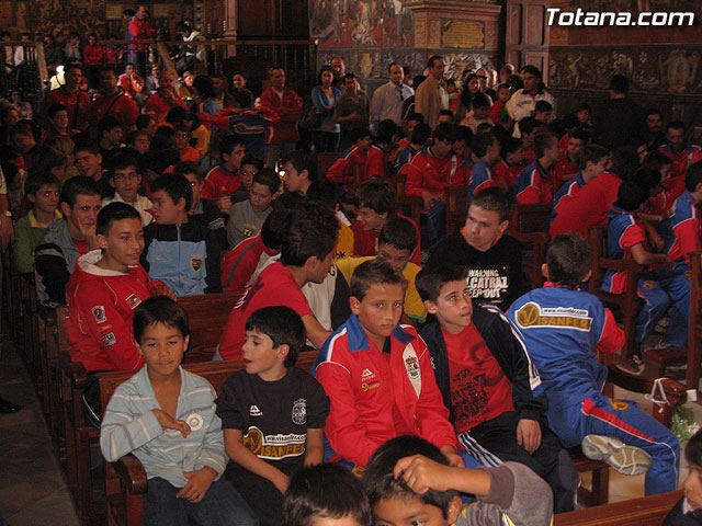 LOS ALUMNOS DE LA ESCUELA MUNICIPAL DE FÚTBOL DE TOTANA REALIZAN UNA OFRENDA FLORAL A SANTA EULALIA