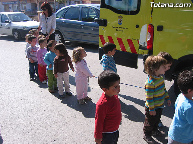 Alumnos de la escuela infantil "Clara Campoamor" participan en una actividad de acercamiento de vehículos de emergencias de la policia local, protección civil y bomberos
