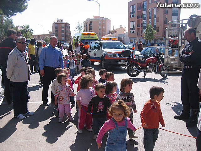 Alumnos de la escuela infantil "Clara Campoamor" participan en una actividad de acercamiento de vehículos de emergencias de la policia local, protección civil y bomberos