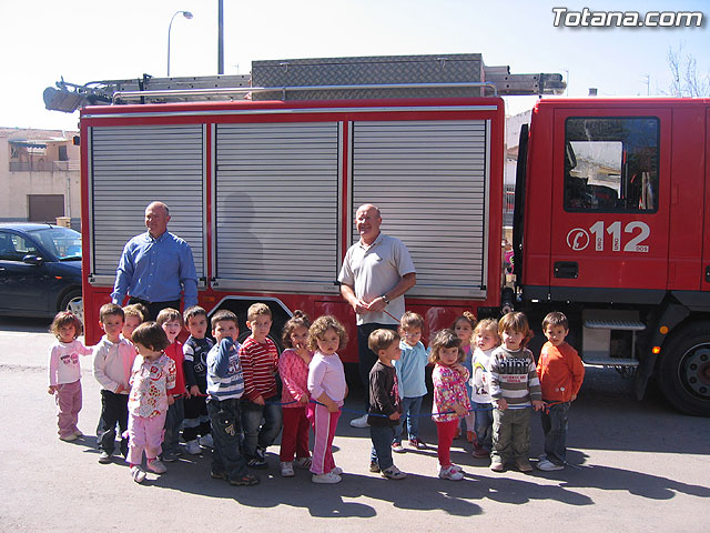 Alumnos de la escuela infantil "Clara Campoamor" participan en una actividad de acercamiento de vehículos de emergencias de la policia local, protección civil y bomberos