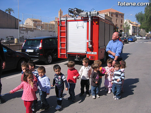Alumnos de la escuela infantil "Clara Campoamor" participan en una actividad de acercamiento de vehículos de emergencias de la policia local, protección civil y bomberos