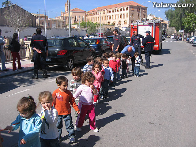 Alumnos de la escuela infantil "Clara Campoamor" participan en una actividad de acercamiento de vehículos de emergencias de la policia local, protección civil y bomberos