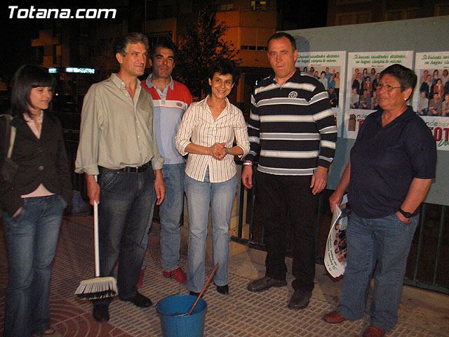 Afiliados y simpatizantes de PP, PSOE , IU+Los Verdes e Independientes por Totana abrieron la campaña electoral con la pegada de carteles - 58