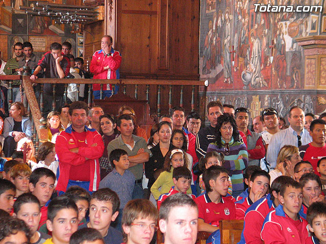 LOS ALUMNOS DE LA ESCUELA MUNICIPAL DE FÚTBOL DE TOTANA REALIZAN UNA OFRENDA FLORAL A SANTA EULALIA