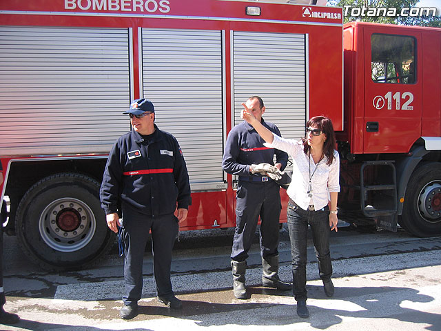 Alumnos de la escuela infantil "Clara Campoamor" participan en una actividad de acercamiento de vehículos de emergencias de la policia local, protección civil y bomberos