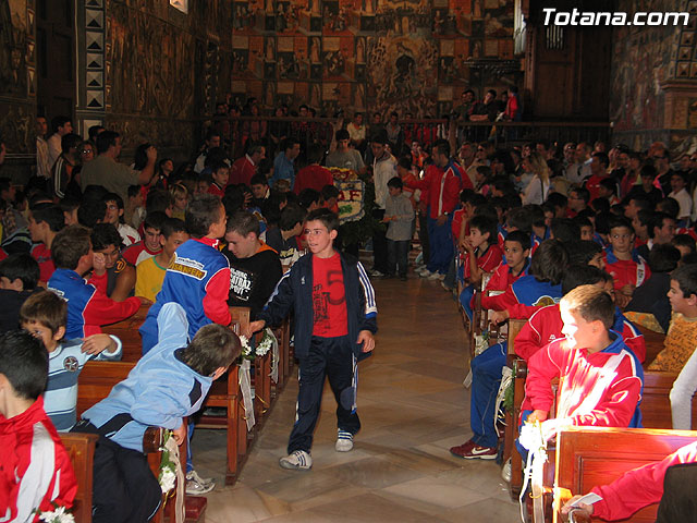 LOS ALUMNOS DE LA ESCUELA MUNICIPAL DE FÚTBOL DE TOTANA REALIZAN UNA OFRENDA FLORAL A SANTA EULALIA