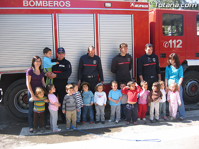 Alumnos de la escuela infantil "Clara Campoamor" participan en una actividad de acercamiento de vehículos de emergencias de la policia local, protección civil y bomberos